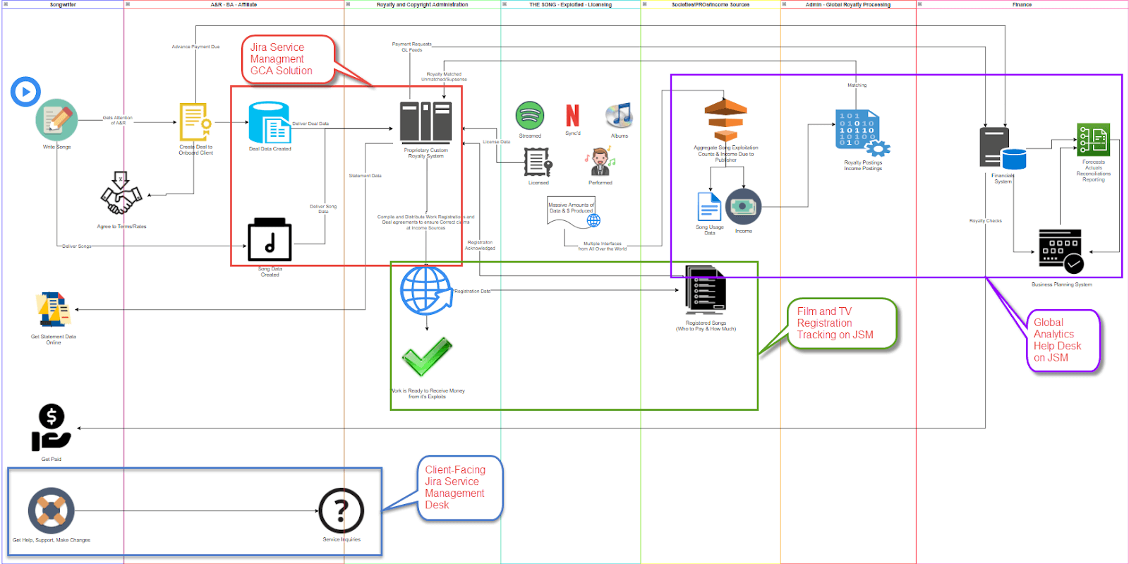 While GCA recognized and considered these challenges, SMP was also going through a rebrand – really a “rebirth” – of their company. Several teams saw this as a prime opportunity to improve processes and tools so that they could better support their team and songwriters. “The name ‘Sony’ is synonymous with technology. Our goal is to meet that expectation and ensure our songwriters know we have the technology to protect and service them. It’s a responsibility to the songwriters and to ourselves,” says Jeff Pittman, Director of IT Operations / Jira Solution Architect at SMP. Patrick Howell, Co-CEO of Trundl, adds, “It was the right time, the right culture, and the right motivation for digital transformation.”