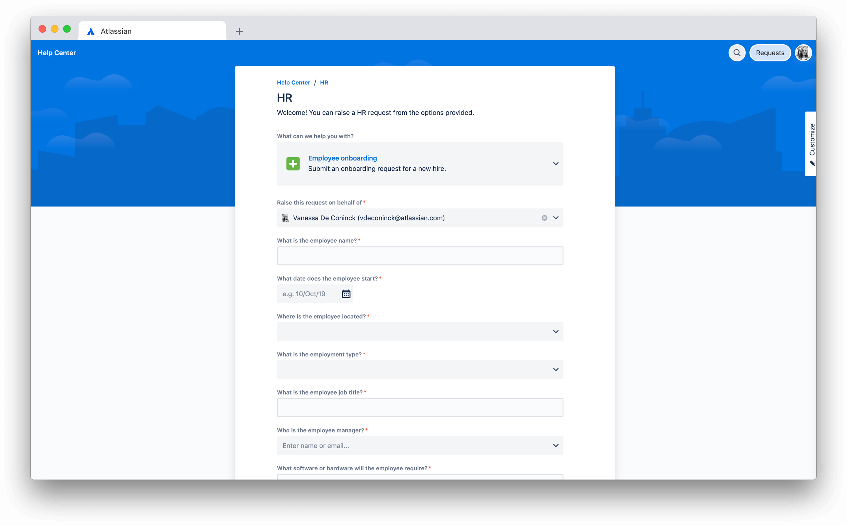 - Simplified access to services: With Jira Service Management HR software, HR teams can set up a portal to make it easy for employees to submit requests. Each team can have its own dedicated service desk.