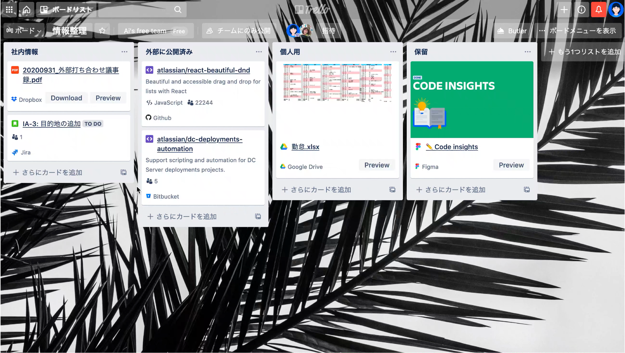 リンクカード:カードのタイトルとしてURLを貼り付けるだけで、外部ツールを埋め込むことができるようになりました。YouTube、Instagram、Dropbox、Stripe、Salesforce、Invision、Google Driveなど、対応する30のツールについてTrello内でプレビューが表示されます。
