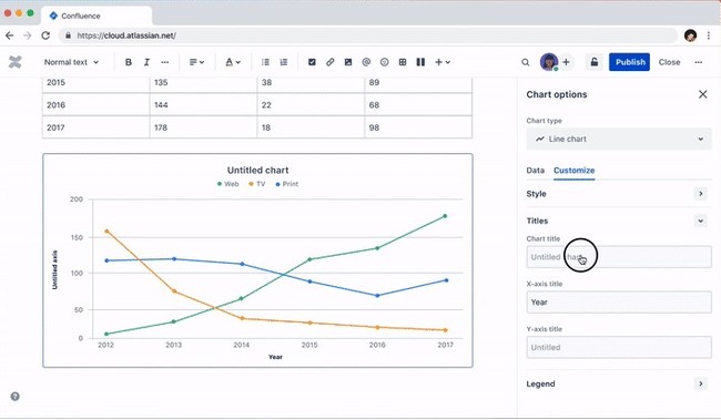 表データの視覚化:数クリックでページ上の表データを、簡単に円グラフ、線グラフ、棒グラフに変換することができるようになりました。題名や色、凡例の表示場所などのカスタマイズも可能です。