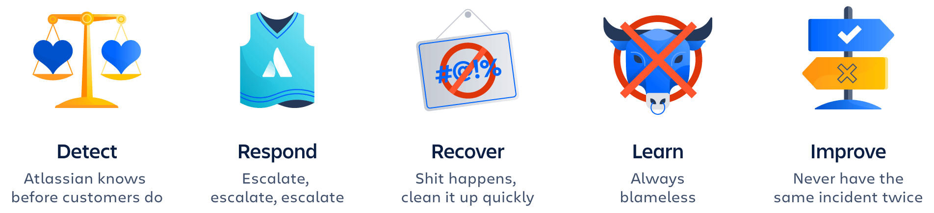 Chcesz zobaczyć, jak Atlassian radzi sobie z poważnymi incydentami? Opublikowaliśmy nasz wewnętrzny podręcznik zarządzania incydentami. Każdy może wykorzystać go jako źródło wiedzy, dostosować go do własnych potrzeb lub użyć w dowolny inny sposób.