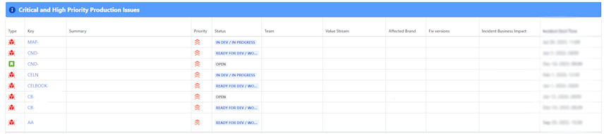 每个团队都使用此模板创建自己的全自动 Confluence 页面,用于跟踪进度和规划下个月的工作。项目组合经理和领导层也会在月度会议上参考项目组合报告,以查看优先级最高的事项、讨论进度并规划后续措施。